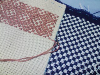 以前、紺に白糸でちょっと複雑なものを刺したんですが、残念な事に二カ所間違えまして。