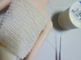 ・愛の服は本当に小さいです。でも、あまり時間をかけずに一着作れるので、凄く気楽です(笑)。技術はまだまだです~!ミシン糸で編むのは、基本が出来る事と視力がさほど悪くなければ、チャレンジできます!おぉ、ミニマフラーまで!となると…、そろそろもう少し大物にチャレンジしたくなる頃では?アームウォーマーやレッグウォーマーなんかも良いかもしれないですぞ!←そそのかしです。冬は長いですもんね。ゆっくりのんびり楽しみましょう!最近は、編んでると「今頃、同じように手を動かしてらっしゃるかも…」なんて思ったりしてます。何もかもスローではありますが、自分のペースでやっていきますね!お気遣いありがとうございます!