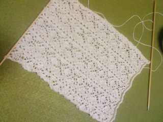 ちなみに、棒針は0号、糸はレース糸40番です。