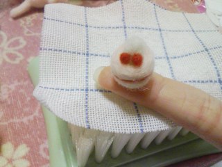 それにしても、フェルトで5ミリの苺作ってキーキー言ってたのに、1ミリ前後の苺作ってるよ(笑)。