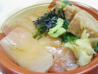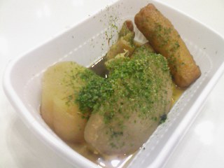 ハクは、大根と牛すじとゴボウ巻きと黒はんぺんとウインナーを選択。