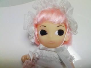 ピンクの髪にレースのお洋服にヘッドドレス!